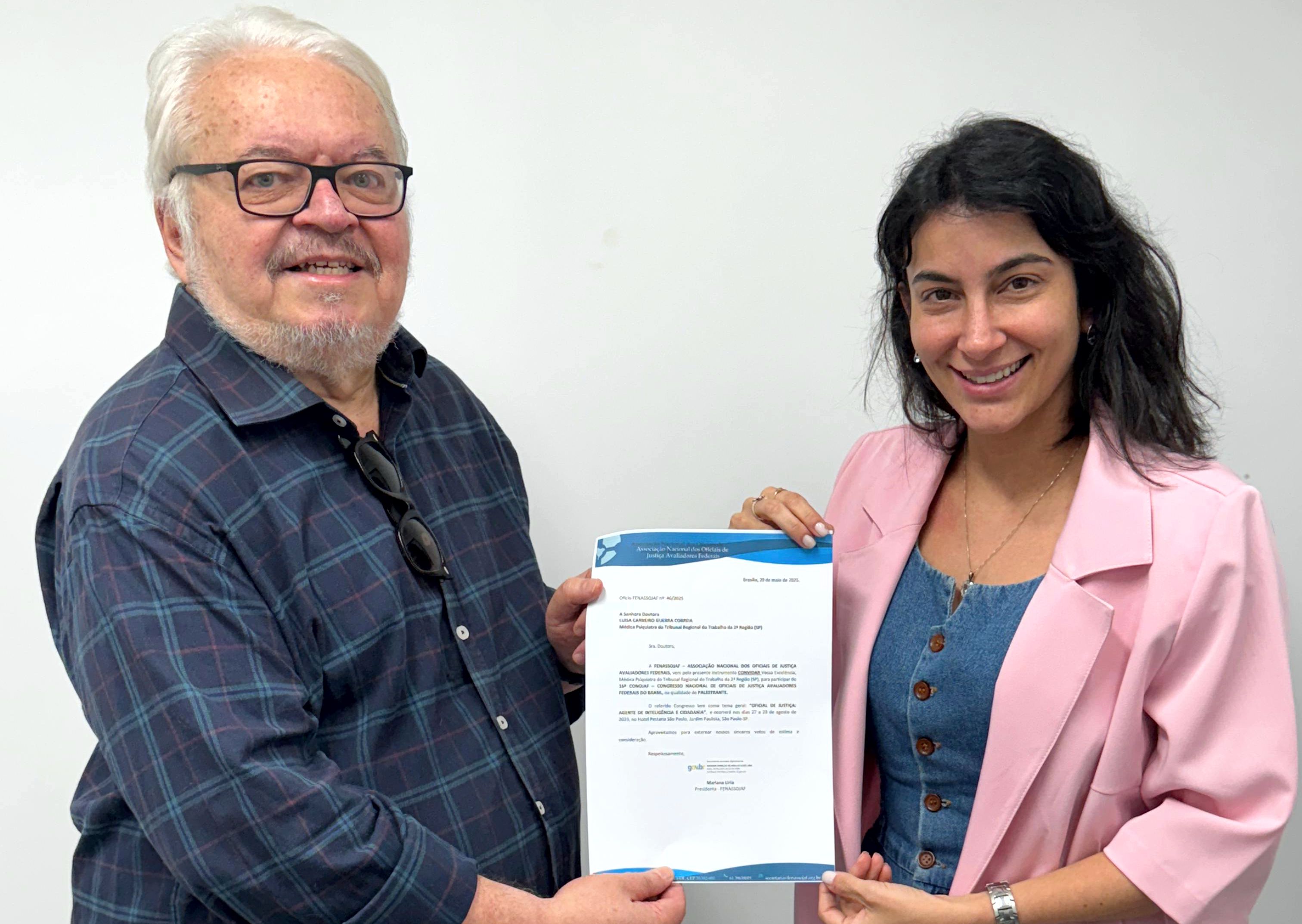 O convite foi entregue pela presidenta Mariana Liria e o presidente da Assojaf/RJ, Sérgio Gonçalves. Com uma trajetória diretamente ligada ao cumprimento de mandados, Vanessa foi Oficial de Justiça nos TRTs da 8ª e da 4ª Regiões. Durante a atuação no TRT-8, coordenou a Central de Mandados de Macapá por quase dois anos, período em que liderou iniciativas voltadas à organização, eficiência e planejamento estratégico das atividades da Central.
