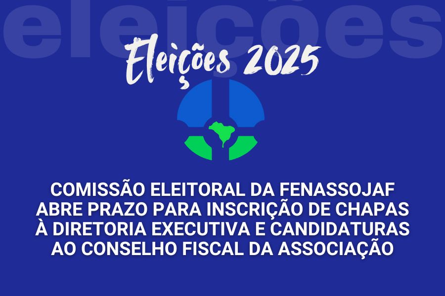 A Comissão Eleitoral da Fenassojaf inicia, a partir das 17h desta terça-feira (22), o período para o registro de chapas à Diretoria Executiva e candidaturas individuais ao Conselho Fiscal da Associação Nacional para o biênio 2025/2027. O prazo para as inscrições permanece aberto até às 23h59 do dia 30 de julho.