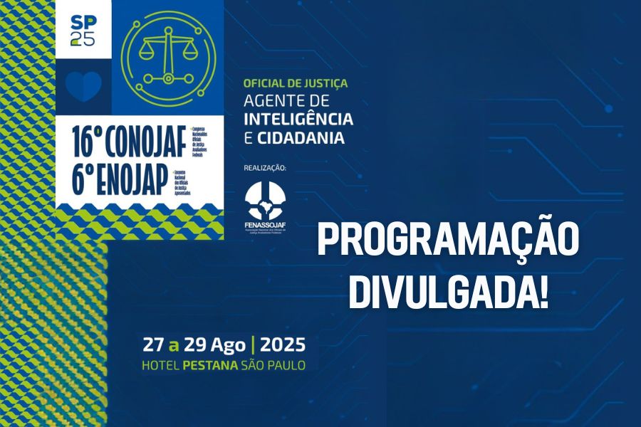 Entre os dias 27 e 29 de agosto, o Hotel Pestana, em São Paulo (SP), será palco do 16º Congresso Nacional dos Oficiais de Justiça Avaliadores Federais (CONOJAF) e do 6º Encontro dos Oficiais Aposentados (ENOJAP). Com o tema “Oficial de Justiça: Agente de Inteligência e de Cidadania”, o evento reunirá Oficiais de todo o país para debater os desafios e as inovações da atividade.