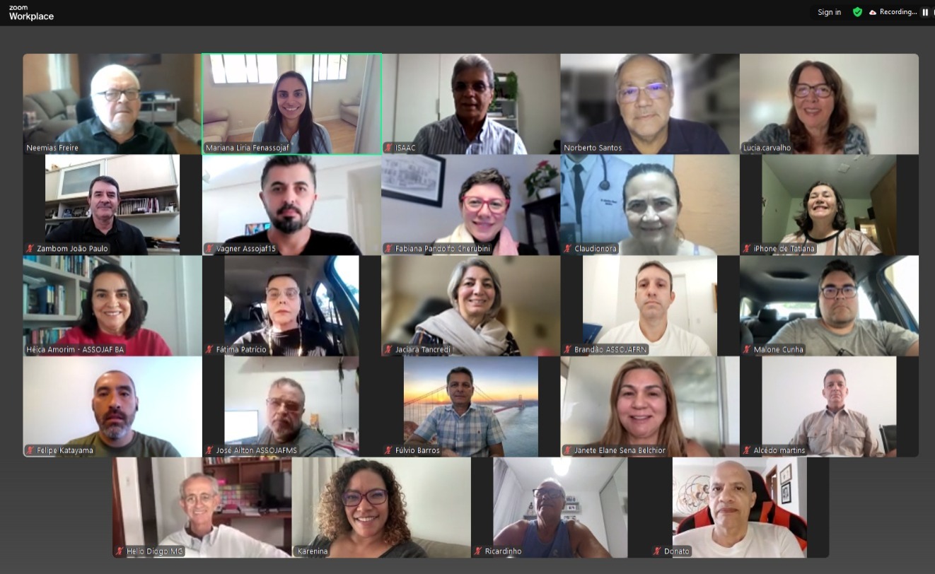 A reunião ocorrerá às 15 horas, por meio do aplicativo Zoom. O link de acesso será disponibilizado a todos os representantes por meio do grupo de WhatsApp da Fenassojaf.