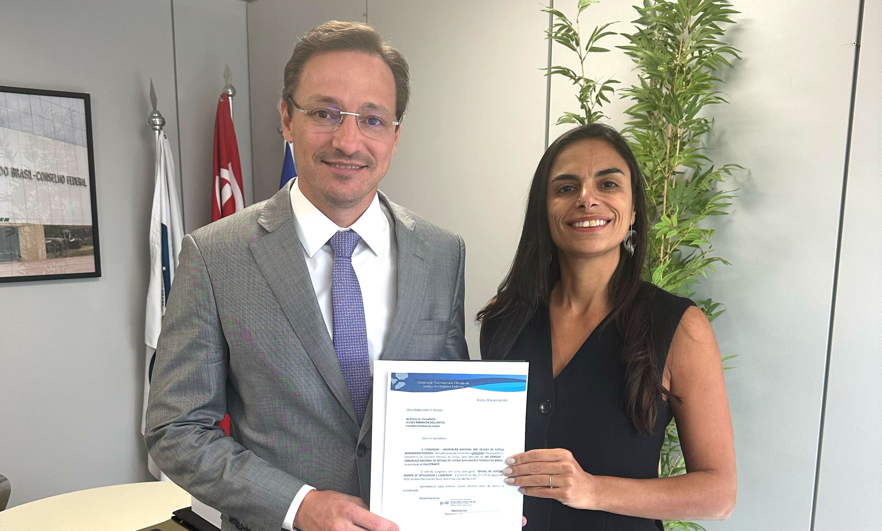 A Fenassojaf, representada pela presidenta Mariana Liria, participou, na última terça-feira (10), de uma reunião no Conselho Nacional de Justiça (CNJ) com o ministro Luís Roberto Barroso. Além do presidente do CNJ e Supremo Tribunal Federal, a conversa foi conduzida pelo Corregedor Nacional de Justiça, ministro Mauro Campbell Marques e pelo vice-presidente do Superior Tribunal Militar, ministro Francisco Joseli Parente Camelo.