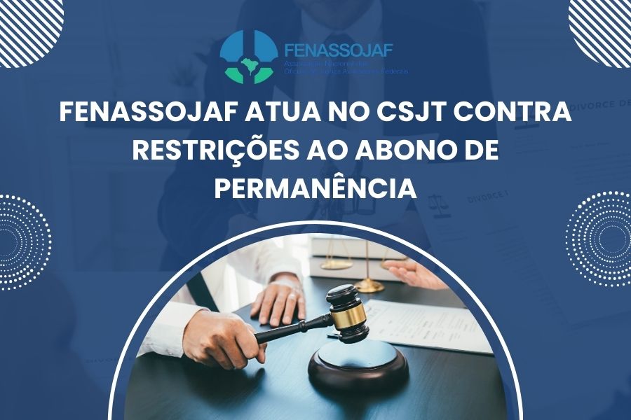 A Fenassojaf solicitou ingresso no Procedimento de Controle Administrativo (PCA) nº 1000418-17.2025.5.90.0000, instaurado no Conselho Superior da Justiça do Trabalho (CSJT), para defender os direitos dos Oficiais de Justiça e demais servidores da Justiça do Trabalho frente à decisão que limita o pagamento do abono de permanência.