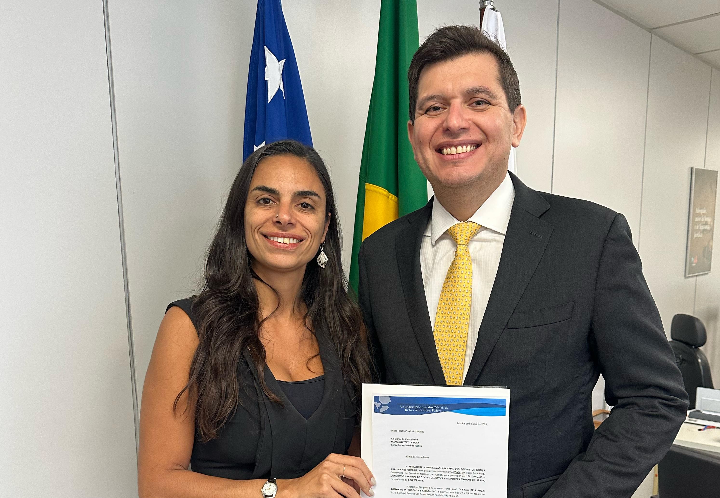 Durante a reunião de entrega formal do convite, a presidenta da Fenassojaf, Mariana Liria, ressaltou a importância da presença do conselheiro e aproveitou a oportunidade para tratar de pautas relevantes para os Oficiais de Justiça, especialmente no que se refere à função como Agente de Inteligência Processual, papel que tem sido objeto de atenção por parte de Terto e do Conselho Nacional de Justiça.Marcello Terto e Silva é procurador do Estado de Goiás e foi indicado ao CNJ pela Procuradoria-Geral da República. Atualmente, ocupa o cargo de Ouvidor Nacional da Justiça e coordenador do Grupo de Trabalho instituído pelo CNJ para elaborar propostas de regulamentação da Resolução nº 600/24.